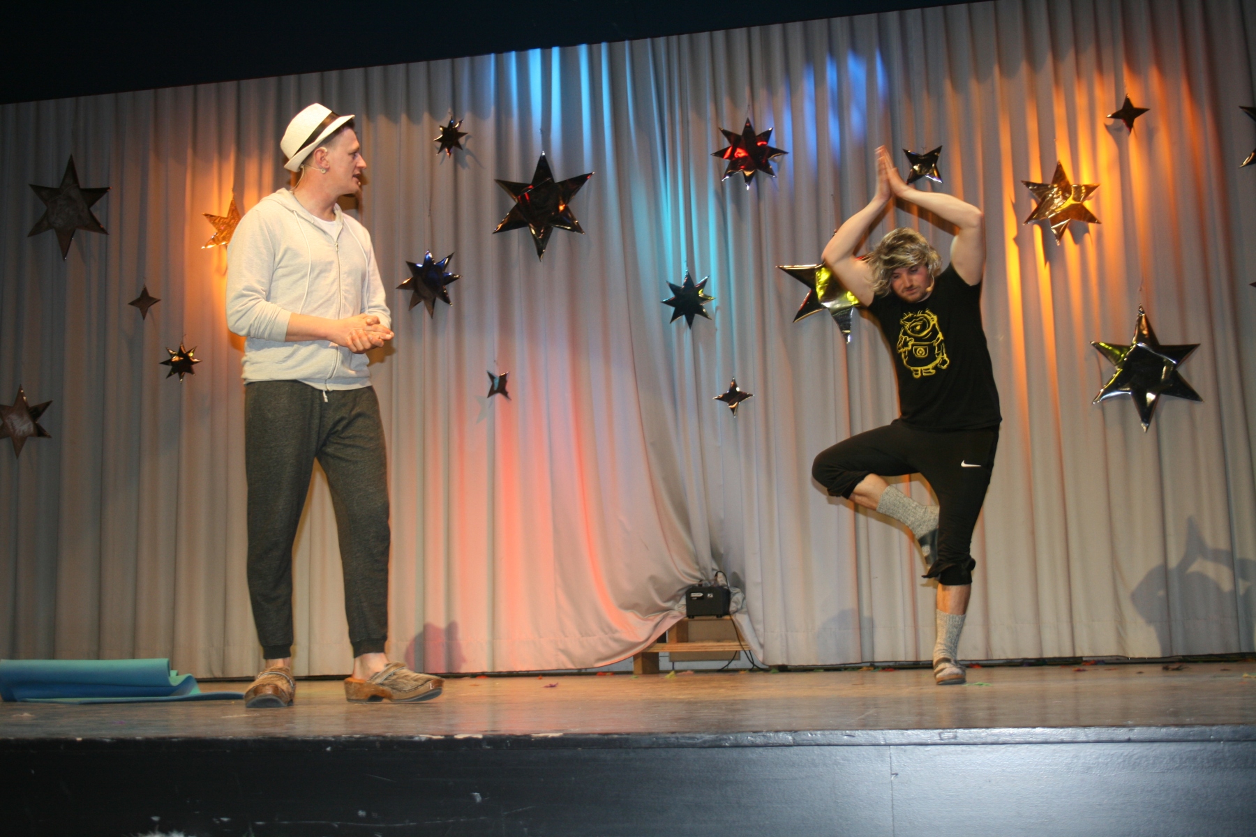 Die Lacher gingen um 22:45 Uhr weiter, als Klara und Pirmin den Sketch „Alte Liebe rostet nicht“ zum Leben erweckten. In einer humorvollen Wellness-Tag-Szene zeigten die beiden auf ihre ganz eigene Art, wie sich alte Gewohnheiten nie wirklich ablegen lassen. 🧖‍♀️
