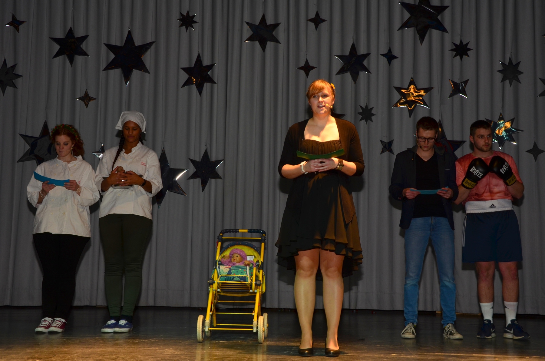 Kurz darauf stand der Sketch „Eine Geschichte“ auf dem Programm. Daniel und Matthias R. nahmen das Publikum mit auf eine Reise durch die überraschenden und manchmal auch verrückten Interpretationen, die man aus einem Buch herauslesen kann – der perfekte Mix aus Humor und Klugheit! 📖