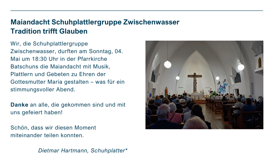 Gestaltung Maiandacht und Übergabe Ehrenurkunde an Martin